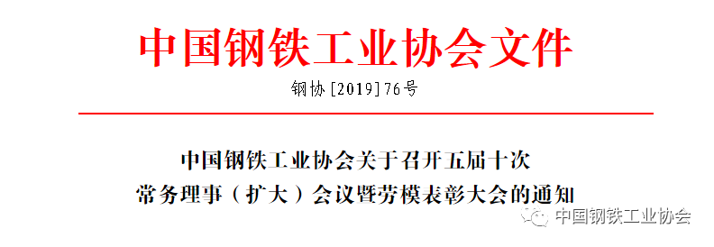 【通知公告】中国钢铁工业协会关于召开五届十次常务理事(扩大)会议暨劳模表彰大会的通知