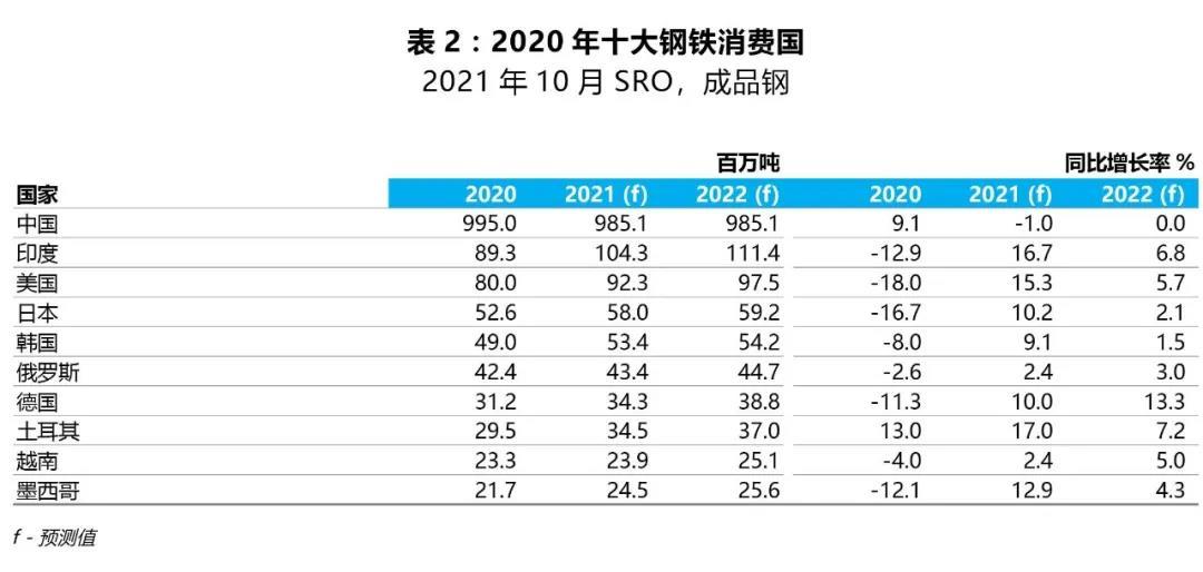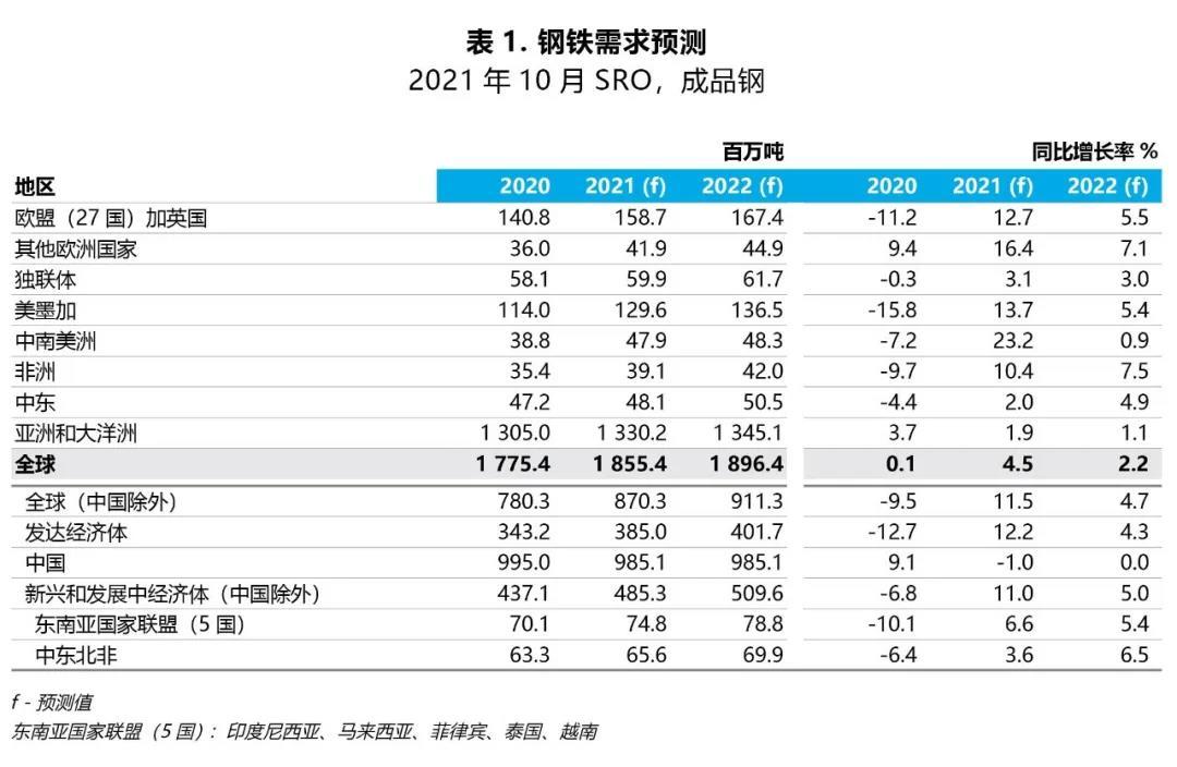 发达经济体的钢铁需求量继2020年下降-12.7%后,将在2021年增长12.2%,在2022年继续增长4.3%,达到疫情之前的水平。