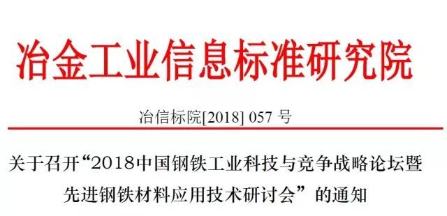 关于召开“2018中国钢铁工业科技与竞争战略论坛暨先进钢铁材料应用技术研讨会”的通知